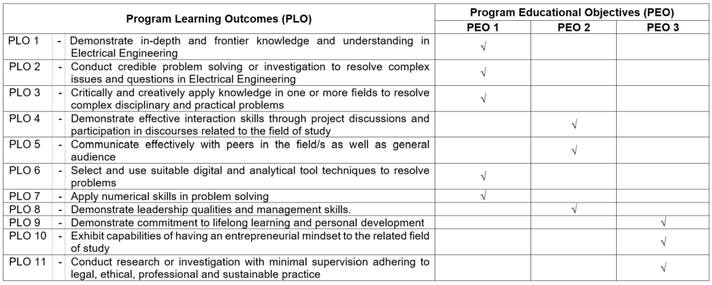 Mapping of Programme Learning Outcomes (PLO) and Programme Educational Objectives (PEO):