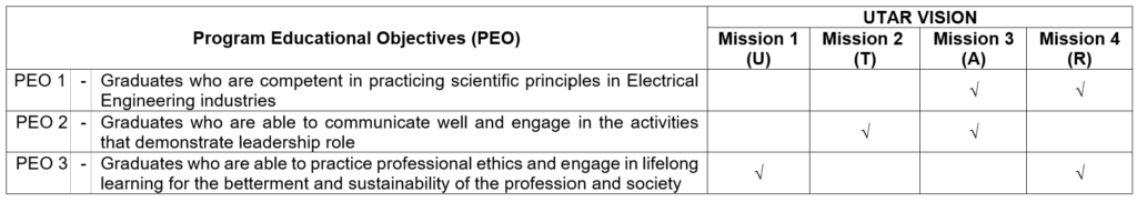 Mapping of UTAR Vision & Mission and Programme Educational Objectives (PEO):