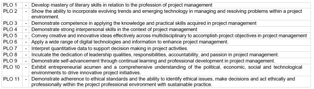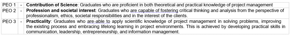 The objectives of the Master of Project Management programme are to produce: