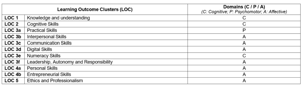 MQF 2nd Edition (2017) Learning Outcome Clusters (LOC) and Domains: