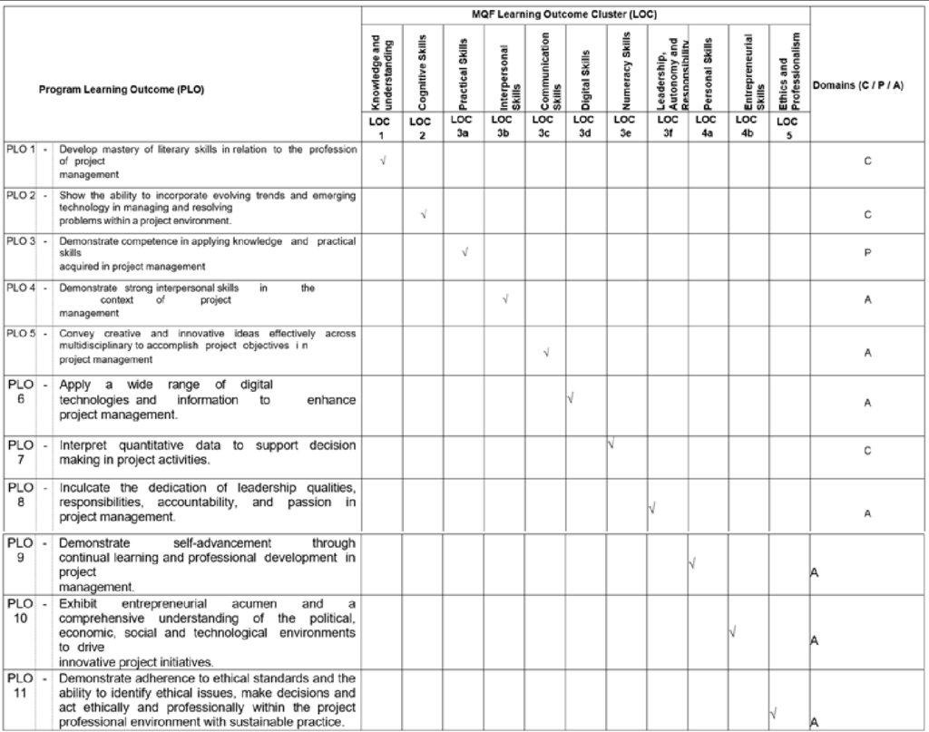 Mapping of Programme Learning Outcome (PLO) to MQF Learning Outcome Cluster (LOC) v2 and Domains: